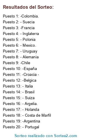 Resultados del sorteo:
