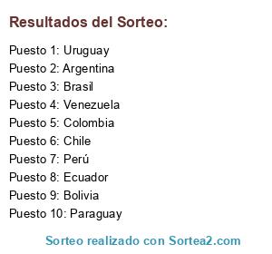 Lista de participantes: Argentina, Bolivia, Brasil, Chile, Colombia, Ecuador, Paraguay, Perú, Uruguay, Venezuela.