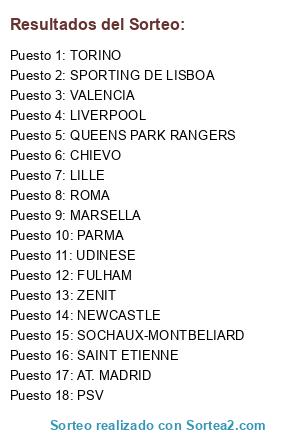 Lista de participantes: AT. MADRID, CHIEVO, FULHAM, LILLE, LIVERPOOL, MARSELLA, NEWCASTLE, PARMA, PSV, QUEENS PARK RANGERS, ROMA, SAINT ETIENNE, SOCHAUX-MONTBELIARD, SPORTING DE LISBOA, TORINO, UDINESE, VALENCIA, ZENIT, .