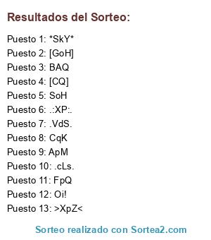 Lista de participantes: .:XP:., .VdS., FpQ, [CQ], .cLs., BAQ, CqK, >XpZ<, SoH, ApM, *SkY*, Oi!, [GoH].
