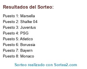 Lista de participantes: Bayern, Atletico, Borussia, Juventus, Shalke 04, PSG, Marsella, Monaco.