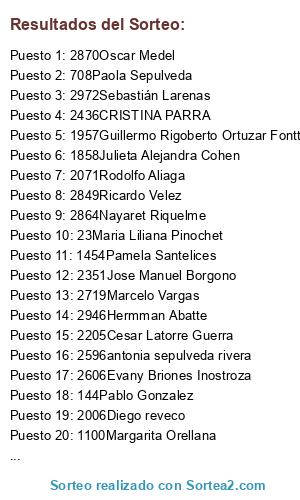 Lista de participantes: Sorteo realizado sobre un fichero que contiene 3.108 participantes.
