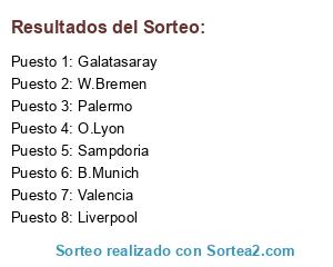 Lista de participantes: Palermo, Valencia, W.Bremen, O.Lyon, Sampdoria, Liverpool, B.Munich, Galatasaray.