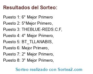 Lista de participantes: THEBLUE-REDS.C.F,, BT_TLLANABIS,, Mejor Primero,, 2° Mejor Primero,, 3° Mejor Primero,, 4° Mejor Primero,, 5°Mejor Primero,, 6° Mejor Primero.