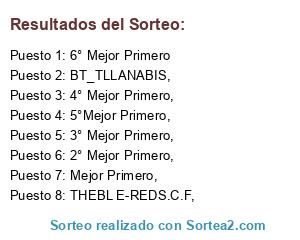 Lista de participantes: THEBL E-REDS.C.F,, BT_TLLANABIS,, Mejor Primero,, 2° Mejor Primero,, 3° Mejor Primero,, 4° Mejor Primero,, 5°Mejor Primero,, 6° Mejor Primero.