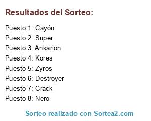 Lista de participantes: Nero , Crack , Kores , Cayón , Super , Zyros , Destroyer , Ankarion.