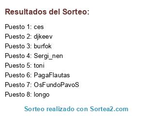 Lista de participantes: Sergi_nen, PagaFlautas, OsFundoPavoS, longo, burfok, djkeev, toni, ces.