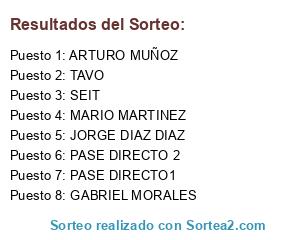 Lista de participantes: MARIO MARTINEZ, GABRIEL MORALES, JORGE DIAZ DIAZ, ARTURO MUÑOZ, TAVO, SEIT, PASE DIRECTO1, PASE DIRECTO 2.