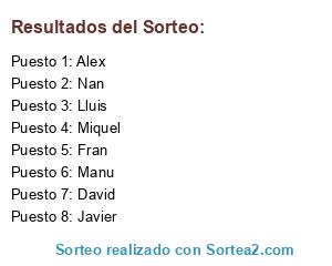 Lista de participantes: Nan, Miquel, Manu, Javier, David, Lluis, Alex, Fran.
