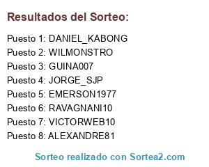 Lista de participantes: WILMONSTRO, RAVAGNANI10, JORGE_SJP, ALEXANDRE81, DANIEL_KABONG, VICTORWEB10, GUINA007, EMERSON1977.