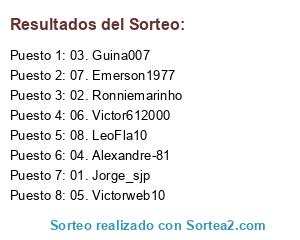 Lista de participantes: 01. Jorge_sjp, 02. Ronniemarinho, 03. Guina007, 04. Alexandre-81, 05. Victorweb10, 06. Victor612000, 07. Emerson1977, 08. LeoFla10.