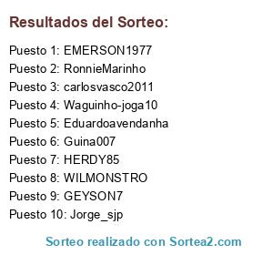 Lista de participantes: Jorge_sjp, RonnieMarinho, Waguinho-joga10, Eduardoavendanha, carlosvasco2011, Guina007, GEYSON7, HERDY85, WILMONSTRO, EMERSON1977, .