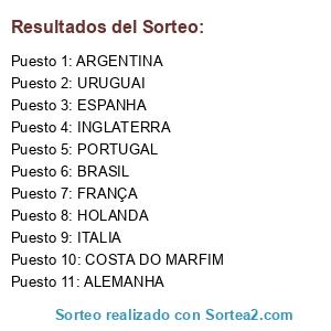 Lista de participantes: BRASIL, ALEMANHA, ESPANHA, INGLATERRA, ARGENTINA, HOLANDA, FRANÇA, ITALIA, PORTUGAL, COSTA DO MARFIM, URUGUAI.