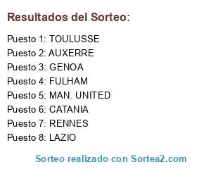Lista de participantes: LAZIO, AUXERRE, FULHAM, TOULUSSE, RENNES, GENOA, CATANIA, MAN. UNITED.