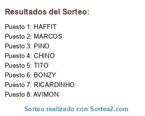 Lista de participantes: AVIMON, BONZY, CHINO, HAFFIT, MARCOS, PINO, RICARDINHO, TITO.