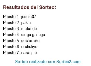 Lista de participantes: diego gallego, doctor pro, mefundo, erchuliyo, naranjito, pakiu, josele07.