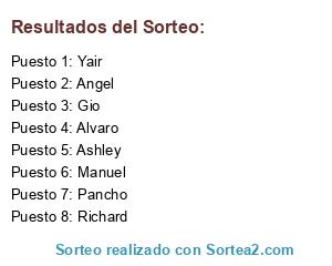 Resultados del sorteo: