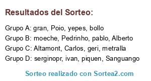 Lista de participantes: Altamont, metralla, ivan, bollo, moeche, piquen, yepes, Poio, serginopr, gran, Alberto, Sanguango, geri, Carlos, Pedrinho, pablo.