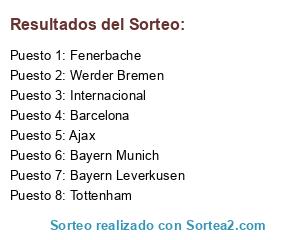 Lista de participantes: Werder Bremen, Bayern Munich, Ajax, Fenerbache, Barcelona, Internacional, Tottenham, Bayern Leverkusen.