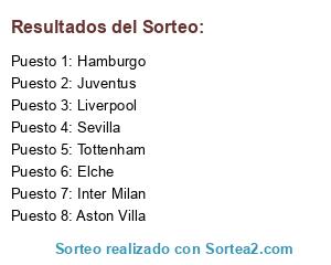 Lista de participantes: Liverpool, Hamburgo, Juventus, Tottenham, Sevilla, Aston Villa, Elche, Inter Milan.