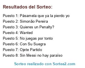 Lista de participantes: Wanted, Simonão Pereira, Sin Messi no hay paraíso, Pásamela que ya la pierdo yo, Quieres un Penalty?, Ojete Partido, Con Su Suegra, No juegas por tonto.