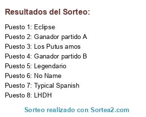 Lista de participantes: Typical Spanish, Eclipse, LHDH, No Name, Legendario, Los Putus amos, Ganador partido A, Ganador partido B.