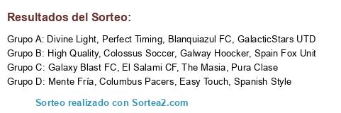 Lista de participantes: Spain Fox Unit, Divine Light, El Salami CF, Blanquiazul FC, Spanish Style, Galway Hoocker, Colossus Soccer, Pura Clase, High Quality, The Masia, Perfect Timing, Columbus Pacers, Mente Fría, Galaxy Blast FC, Easy Touch, GalacticStars UTD.