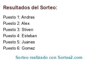 Lista de participantes: Gomez, Alex, Juanes, Stiven, Andres , Esteban.