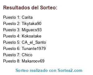 Lista de participantes: Carita, Tunante1979, Miguecs93, Makaroov69, Chico, Tikytaka90, Kokoatake, CA_el_Santo.