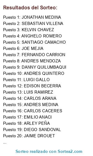 Resultados del sorteo: