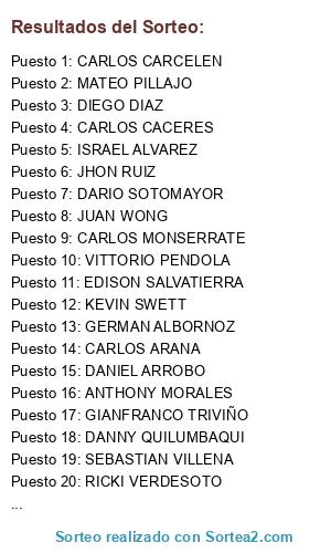 Lista de participantes: ABEL GUEVARA, ALBERTO VELEZ, ALEX CEDEÑO, ALEX CRUZ, ALEXIS DIAZ, ALLAN SUAREZ, ANDRES ALTAMIRANO, ANDRES MEDINA, ANDRES ORTIZ, ANGHELO ROMERO, ANTHONY MORALES, ARIEL TAPIA, AXEL RIVAS, BRYAN MORALES, CARLOS ARANA, CARLOS CACERES, CARLOS CARCELEN, CARLOS MONSERRATE, DANIEL ARROBO, DANNY QUILUMBAQUI, DARIO MORLA, DARIO SOTOMAYOR, DAVID VILLAFUERTE, DENNIS CARRILLO, DIEGO DIAZ, DIEGO GUZMAN, DIEGO SOLEDISPA, EDISON SALVATIERRA, EMILIO ANACI, ESTUARDO MARTINEZ, FABRY QUIJIJE, FELIPE TIPANTA, GENARO DIAZ, GERMAN ALBORNOZ, GIANFRANCO TRIVIÑO, IRVIN BERMELLO, ISRAEL ALVAREZ, JEAN ROMERO, JEREMY MOLINA, JHON RUIZ, JHORDAN ARELLANO, JOHAN PADILLA, JONATHAN MEDINA, JORDAN GALARZA, JOSE AYALA, JOSE CEVALLOS, JOSUE GUILLEN, JOSUE ROMAN, JUAN PADILLA, JUAN SANCHEZ, JUAN WONG, JULIO FRANCO, KELVIN CHAVEZ, KEVIN SWETT, LUIS RAMIREZ, MARIO BARBERAN, MARLON LOPEZ, MARLON PALADINEZ, MATEO ESPINEL, MATEO PILLAJO, MATHEW SEMINARIO, MATIAS UREÑA, NICOLAS DELGADO, PABLO SEGURA, RICARDO ARROBO, RICARDO CARVACHE, RICARDO SOTALIN, RICKI VERDESOTO, ROBERTO FLORES, ROY FRANCO, SANTIAGO CAMACHO, SANTIAGO GUEVARA, SEBAS MARTINEZ, SEBASTIAN MENDOZA, SEBASTIAN VILLENA, STEVEN VILLAGOMEZ, VICENTE NICOLA, VINICIO MACIAS, VITTORIO PENDOLA, XAVIER ALVAREZ.