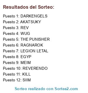 Lista de participantes: AKATSUKY, SIIM, KILL, RAGNAROK, WUG, EGYP, THE PUNISHER, REVERENDO, DARKENGELS, MEIM, REV, LEGION LETAL.
