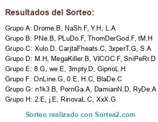Lista de participantes: tM.H, Y.H, M.H, GipnoL.H, 3xperT.G, 8.G, XxX.G, OnLine.G, VICOC.F, PLuDo.F, NaSh.F, ThomDerGod.F, 2.E, 0.E, j.E, we.E, SniPeRr.D, DamianN.D, 3mpty.D, Xulo.D, RinovaL.C, CarjtaFheats.C, BlaDe.C, H.C, PNe.B, n1k3.B, MegaKiller.B, Drome.B, S.A, PornGa.A, RyDe.A, L.A.