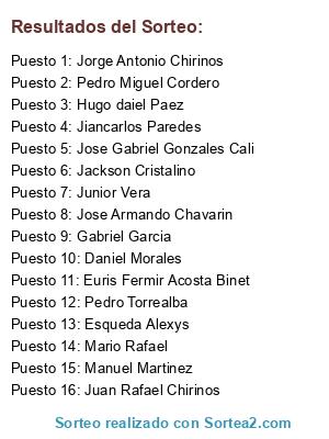 Resultados del sorteo: