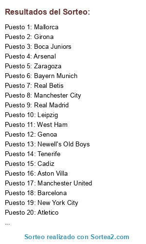 Resultados del sorteo: