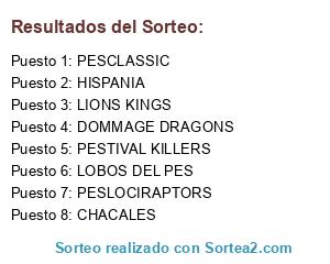 Lista de participantes: LOBOS DEL PES, LIONS KINGS, PESTIVAL KILLERS, PESLOCIRAPTORS, HISPANIA, DOMMAGE DRAGONS, CHACALES, PESCLASSIC.