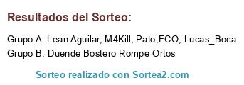 Lista de participantes: Lucas_Boca, M4Kill, Pato;FCO, Lean Aguilar, Duende Bostero Rompe Ortos.