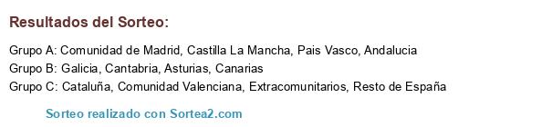 Lista de participantes: Castilla La Mancha, Comunidad Valenciana, Comunidad de Madrid, Asturias, Cantabria, Andalucia, Cataluña, Pais Vasco, Canarias, Extracomunitarios, Galicia, Resto de España.