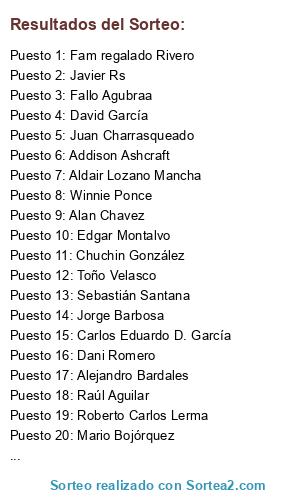 Lista de participantes: David García, Winnie Ponce, Edgar Montalvo, Addison Ashcraft, Dani Romero, Chuchin González, Carlos Eduardo D. García, Ángel Fdz, Jorge Barbosa, Juan Charrasqueado, Roberto Carlos Lerma, Alan Chavez, Aldair Lozano Mancha, Javier Rs, Óscar Millan Sánchez, Alejandro Bardales, Fallo Agubraa, Hoch Rodríguez, Toño Velasco, Guayabo Laz, Sebastián Santana, Raúl Aguilar, Mario Bojórquez, Fam regalado Rivero.