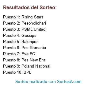 Lista de participantes: Balonpes, Gossips, Eva FC, Poland National, Rising Stars, Pesoholichari, BPL, Pes New Era, Pes Romania, PSML United.