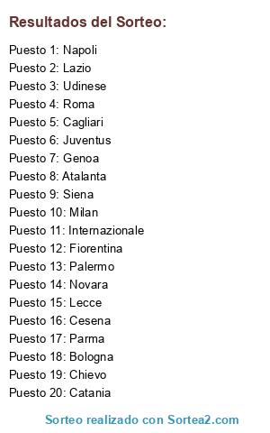 Lista de participantes: Atalanta, Bologna, Cagliari, Catania, Cesena, Chievo, Fiorentina, Genoa, Internazionale, Juventus, Lazio, Lecce, Milan, Napoli, Novara, Palermo, Parma, Roma, Siena, Udinese.