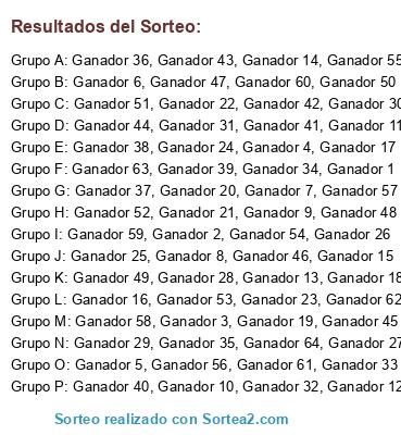 Resultados del sorteo: