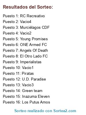 Lista de participantes: Piratas, Green team, Imperialistas, Angels Of Death, Inazuma Eleven, U.D. Paradise, Young Promises, RC Recreativo, Murciélagos CDF, El Otro Lado FC, ONE Armed FC, Los Putus Amos, Vacio1, Vacio2, Vacio3, Vacio4.