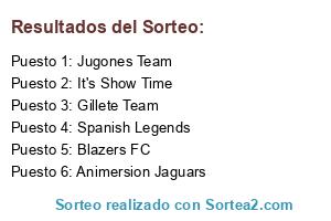 Lista de participantes: It's Show Time, Animersion Jaguars, Spanish Legends, Jugones Team, Blazers FC, Gillete Team.