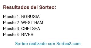 Lista de participantes: WEST HAM, RIVER, BORUSIA, CHELSEA.