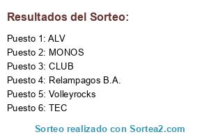 Lista de participantes: Relampagos B.A., ALV, Volleyrocks, CLUB, MONOS, TEC.