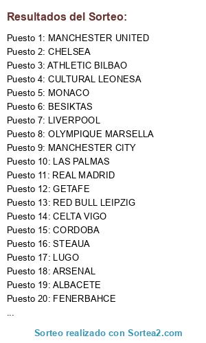 Resultados del sorteo: