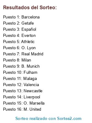 Resultados del sorteo: