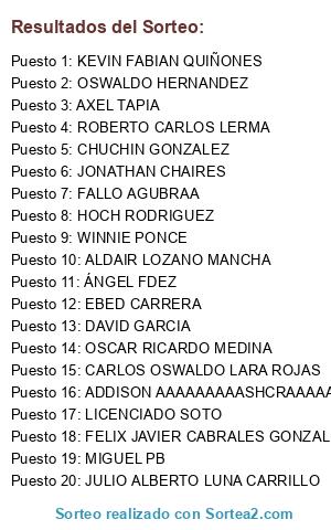 Resultados del sorteo: