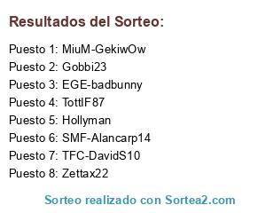 Lista de participantes: EGE-badbunny, Gobbi23, Hollyman, MiuM-GekiwOw, SMF-Alancarp14, TFC-DavidS10, TottIF87, Zettax22.